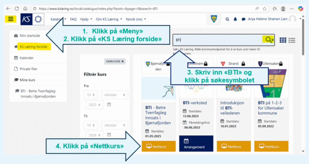 For å finne e-læringskurset i KS Læring følger du stega under: