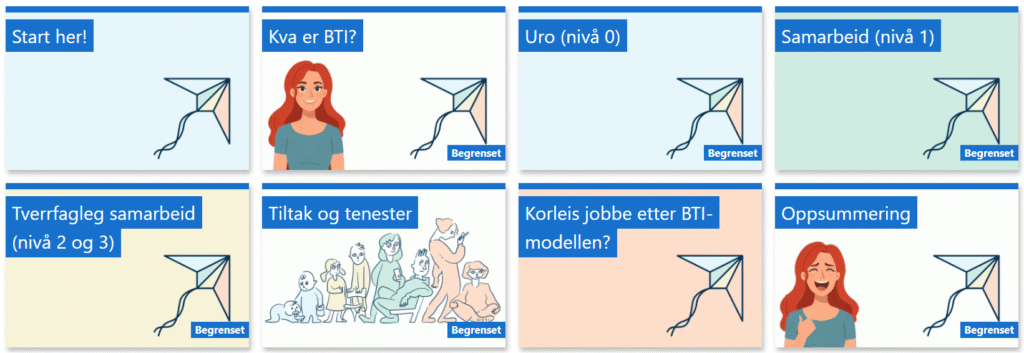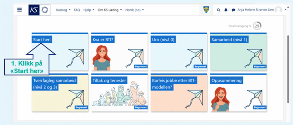 5. Scroll ned og klikk på «Kva er BTI?» No startar sjølve e-læringskurset 🙂 Lykke til!